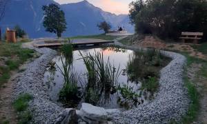 Mit dem Projekt «Lätzi Tolu – Aus eins mach zwei» wurde in der Naturparkgemeinde Guttet-Feschel, in unmittelbarer Nähe des bestehenden Löschwasserbeckens, ein neuer, vielseitiger Lebens- und Erlebnisraum geschaffen. Ziel des Projekts war es, das Areal in einen naturnahen Erholungsort zu verwandeln, der sowohl ökologisch wertvoll als auch für Familien mit Kindern ansprechend ist.