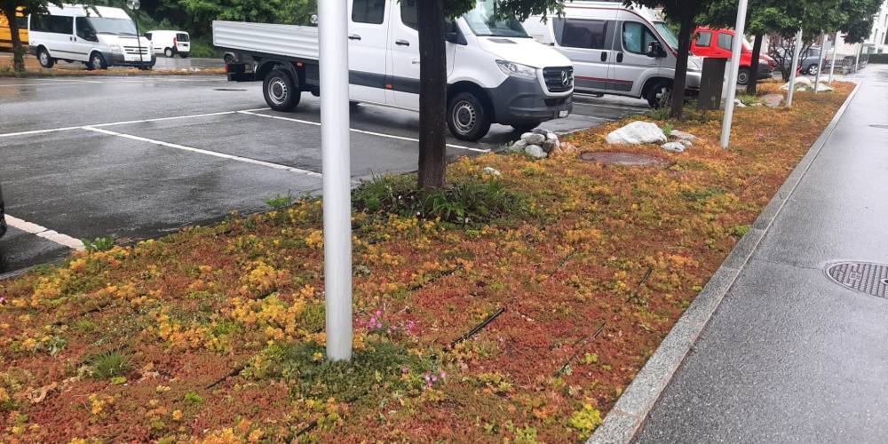 Begrünung der Schotterbeete zur Hitzeminderung sowie ökologischer und optischer Aufwertung