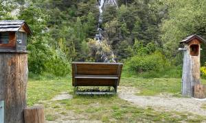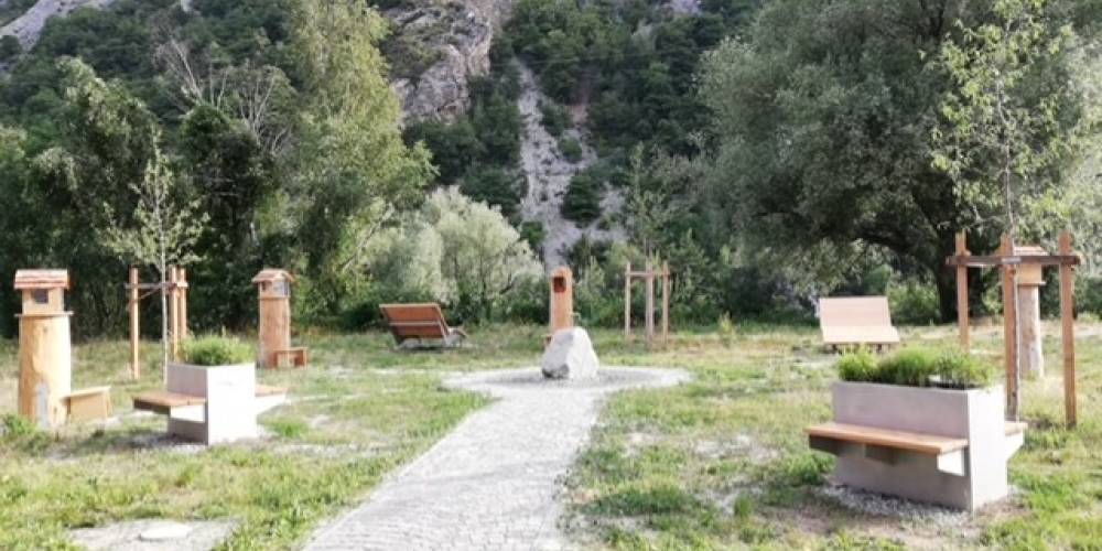 Am Bahnhof Leuk wurde ein naturnaher Ort mit interaktiven Elementen gestaltet. Wartende Gäste können sich auf der neugestalteten Fläche entspannen und mehr über die Naturpark Gemeinde Leuk erfahren.
