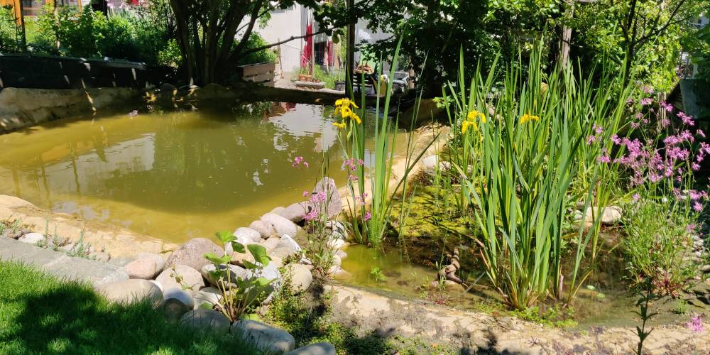 Einfach ein Garten, ein Platz für alle und möglichst pflegeleicht. Ast- und Steinhaufen erleichtern das Gärtnern und schaffen Lebensraum. Ein Teich, in dem man auch Baden kann, ist purer Luxus (nicht nur für Menschen).