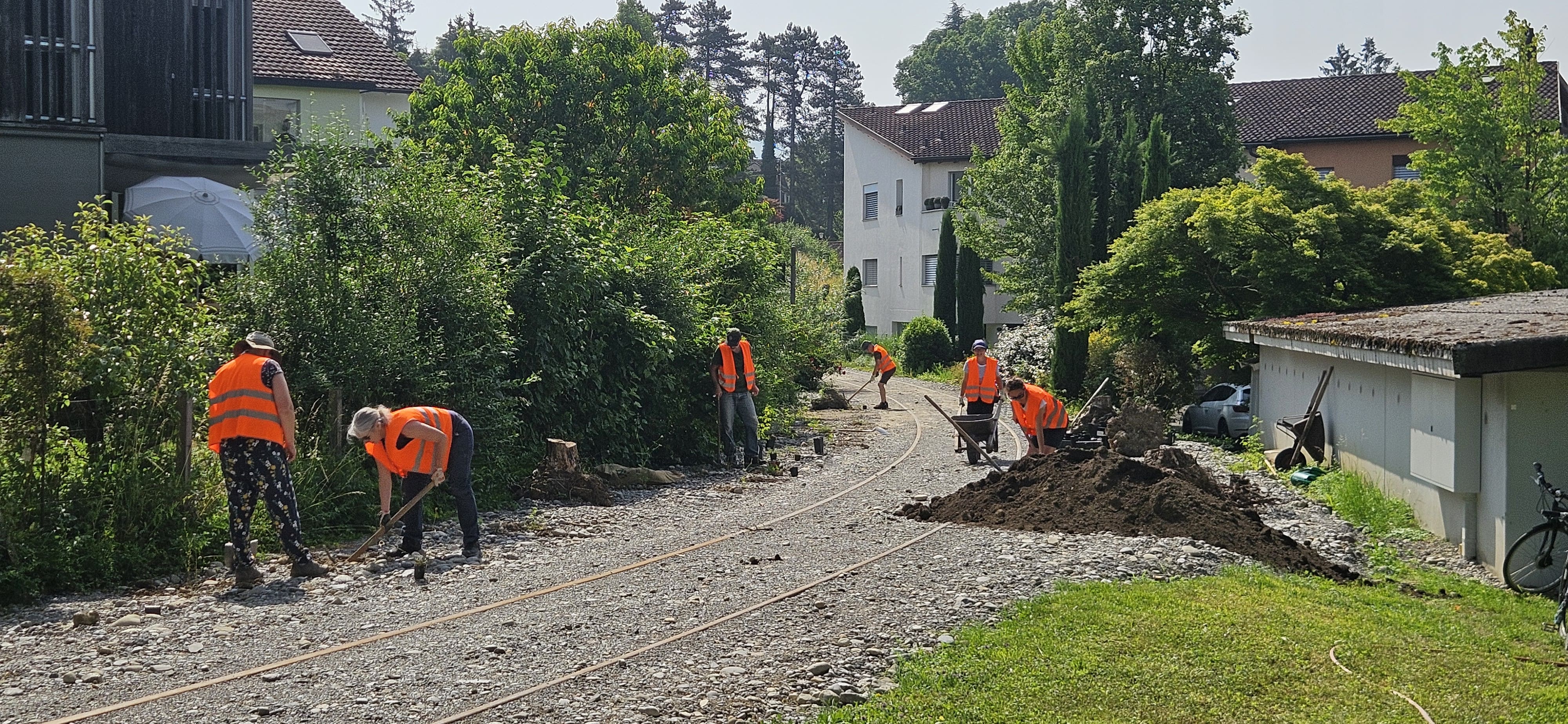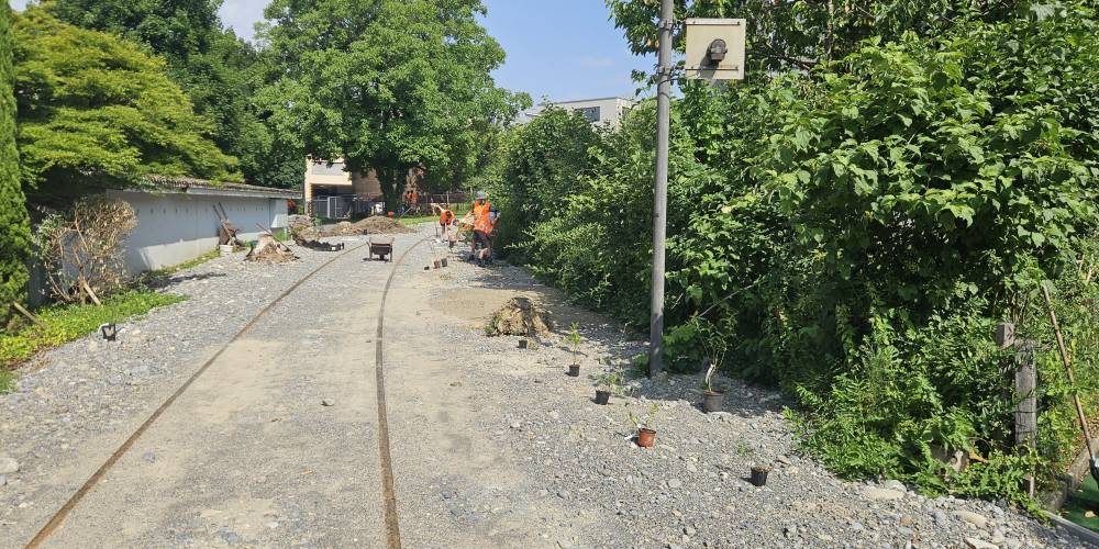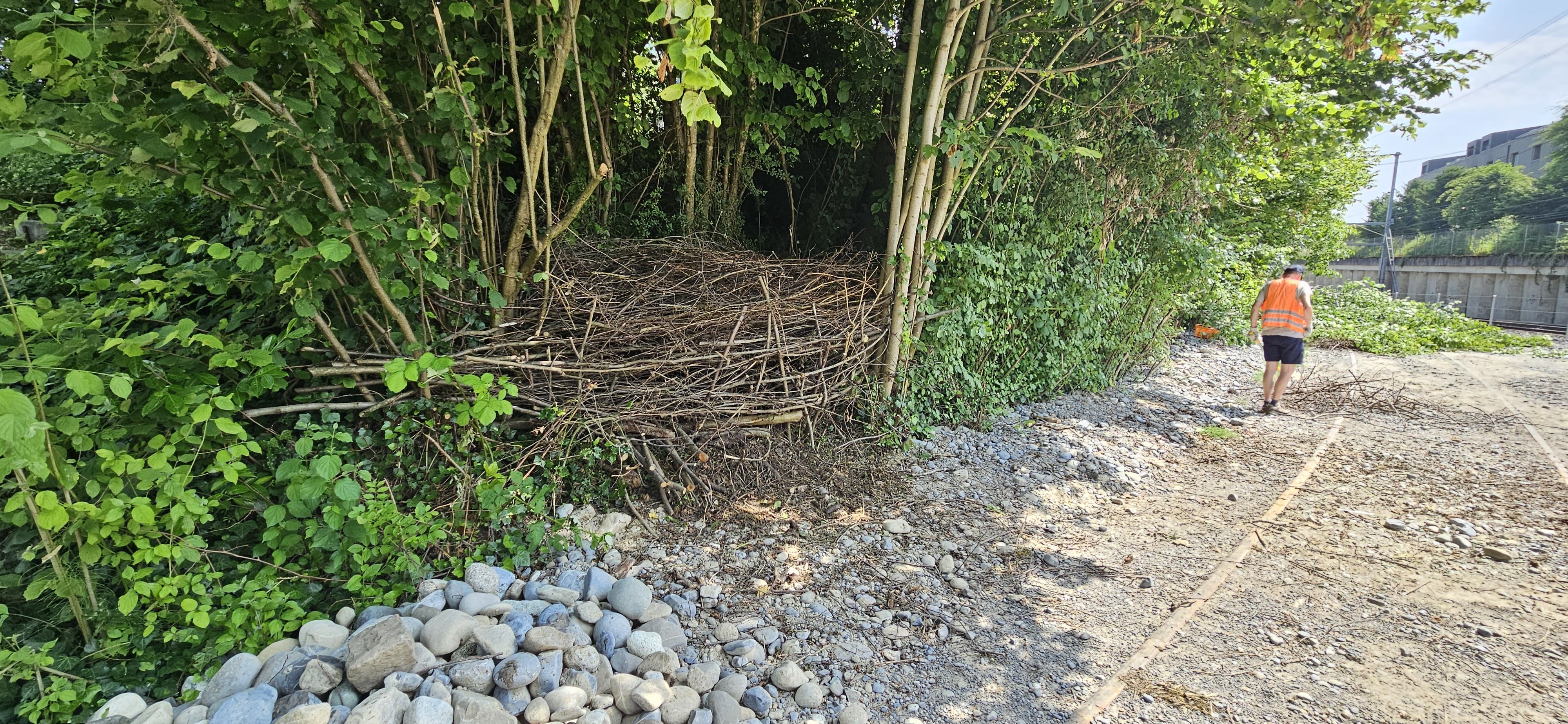 Auf dem ehemaligen Zubringergleis der Papierfabrik in Cham ist ein grosses Insektenparadies entstanden. Die historische Fabrikinfrastruktur wurde saniert und ökologisch aufgewertet. Nun finden sich dort sandige Nistplätze, sowie eine grosse Wildblumenwiese für Wildbienen, Tümpel für Amphibien, Asthaufen für Igel und vieles mehr.