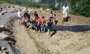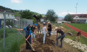 Die Schülerinnen und Schüler durften bei den Arbeiten tatkräftig mithelfen. Nun erleben sie nicht nur spannende Pausen, sondern auch lehrreiche Schulstunden in ihrem neuen Aussenklassenzimmer.
