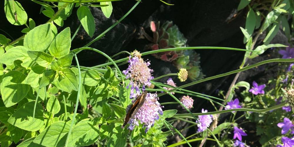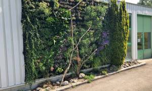 Als Demofläche haben wir diesen vertikalen Garten von 12 m an unserem Gebäude erstellt. Ein grosser Teil der Pflanzen sind einheimische Widblumen. Skabiosen, Dost, Braunellen, Glockenblumen, Karthäusernelken und viele mehr locken unzählige Insekten an. Im dicht bebauten urbanen Raum sind Vertikalbegrünungen eine tolle Möglichkeit, die Natur wieder zurückzuholen.